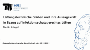 Vortrag vom 02.12.2021, Univ.-Prof. Dr.-Ing. Martin Kriegel, Hermann-Rietschel-Institut, TU Berlin Es existieren verschiedene Empfehlungen, welche Größe für die virusfreie Zuluft …